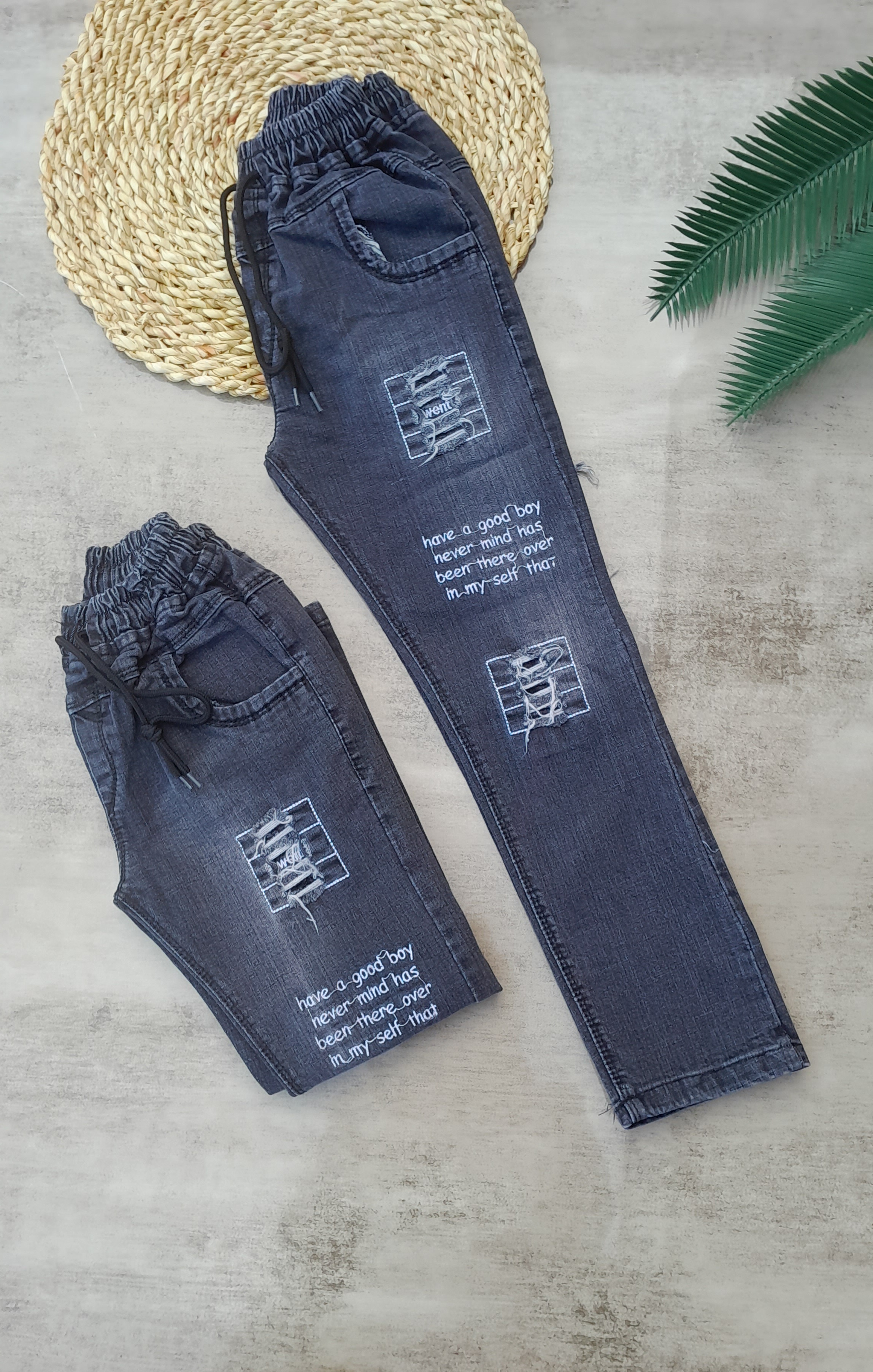 شلوارجین اسپرت ذغالی کیفیت عالی کمرکش مناسب ۷تا۱۰سال