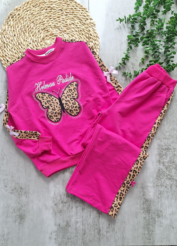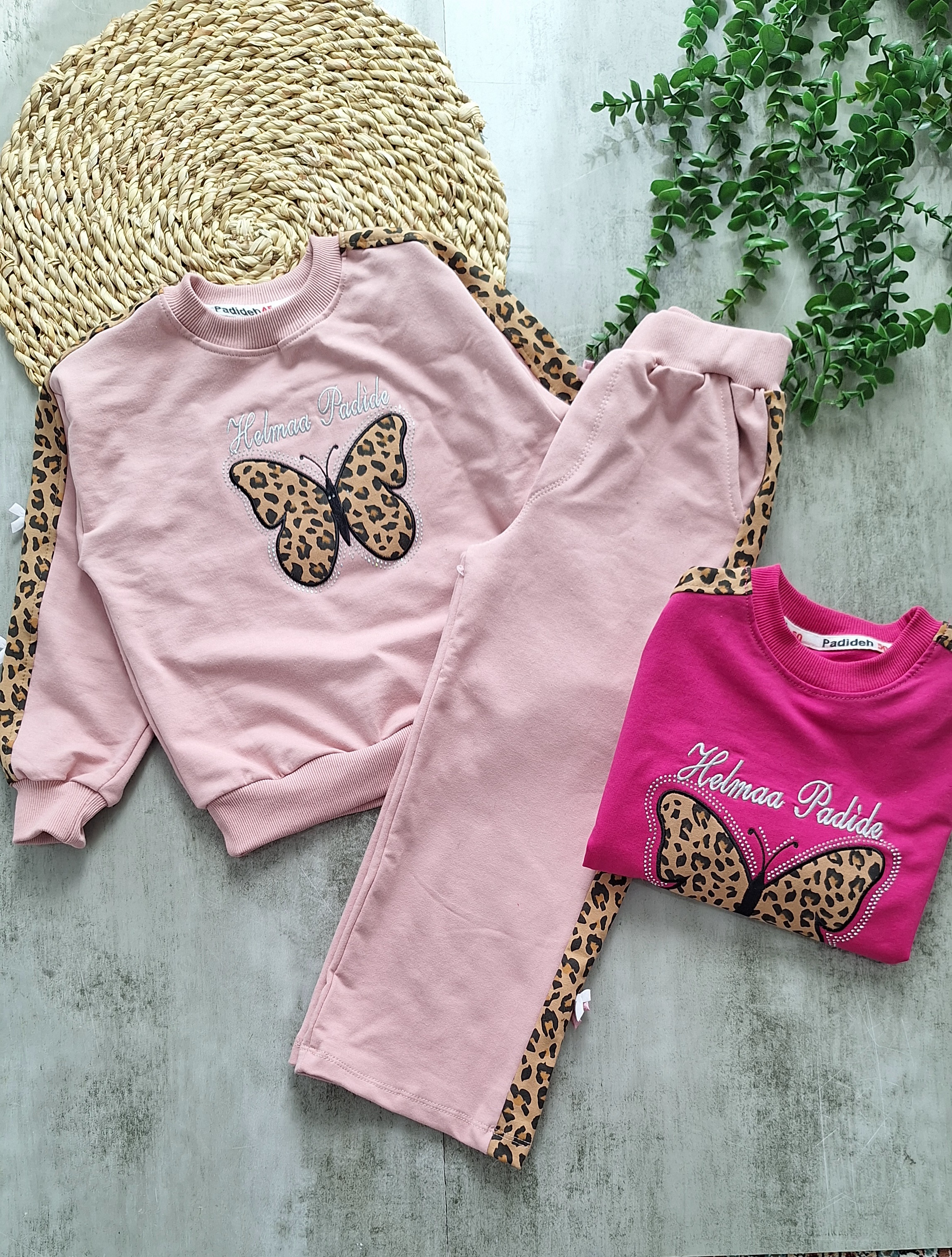 ست بلوزشلواردخترونه پروانه پلنگی جنس دورس دونخ لاکرا