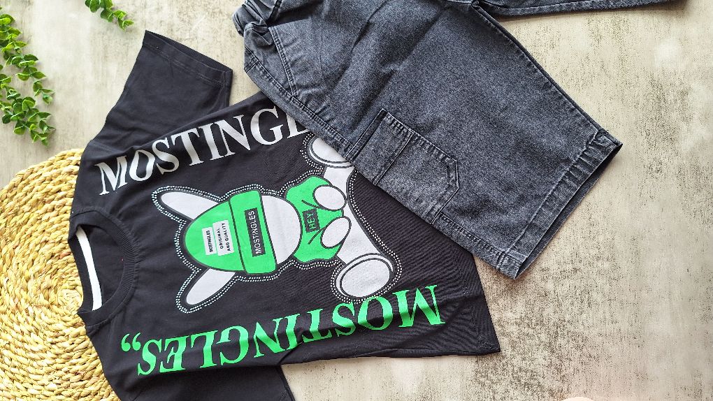 جنس تیشرت :نخ پنبه جنس شلوارک:جین کاغذی یه ست خوشگل بیرونی فقط سایز۴۵و۶۰