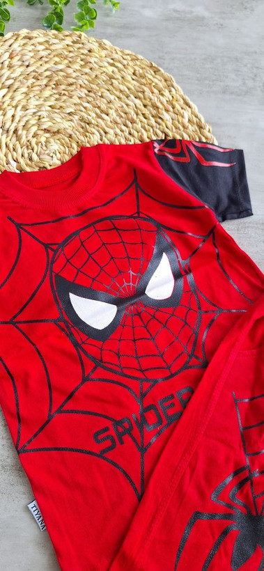 ست تیشرت شلوارک پسرونه مردعنکبوتی جنس نخ پنبه