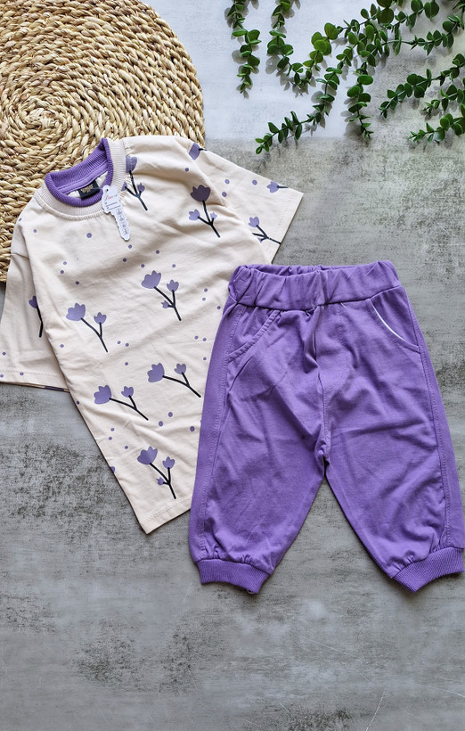ست تیشرت شلوارک دخترونه گل لاله جنس پنبه