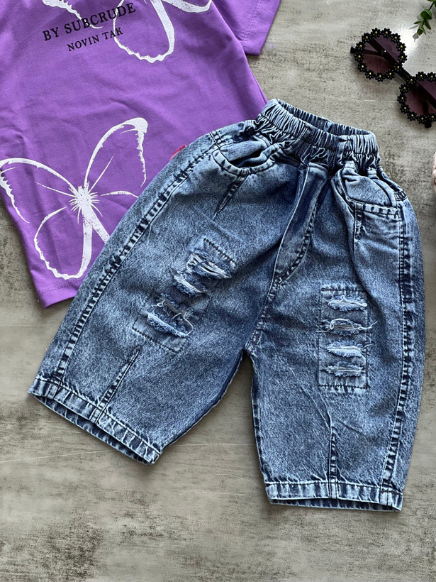 تیشرت شلوارک دخترونه جنس شلوارک جین زاپدارفقط سایز۴۰