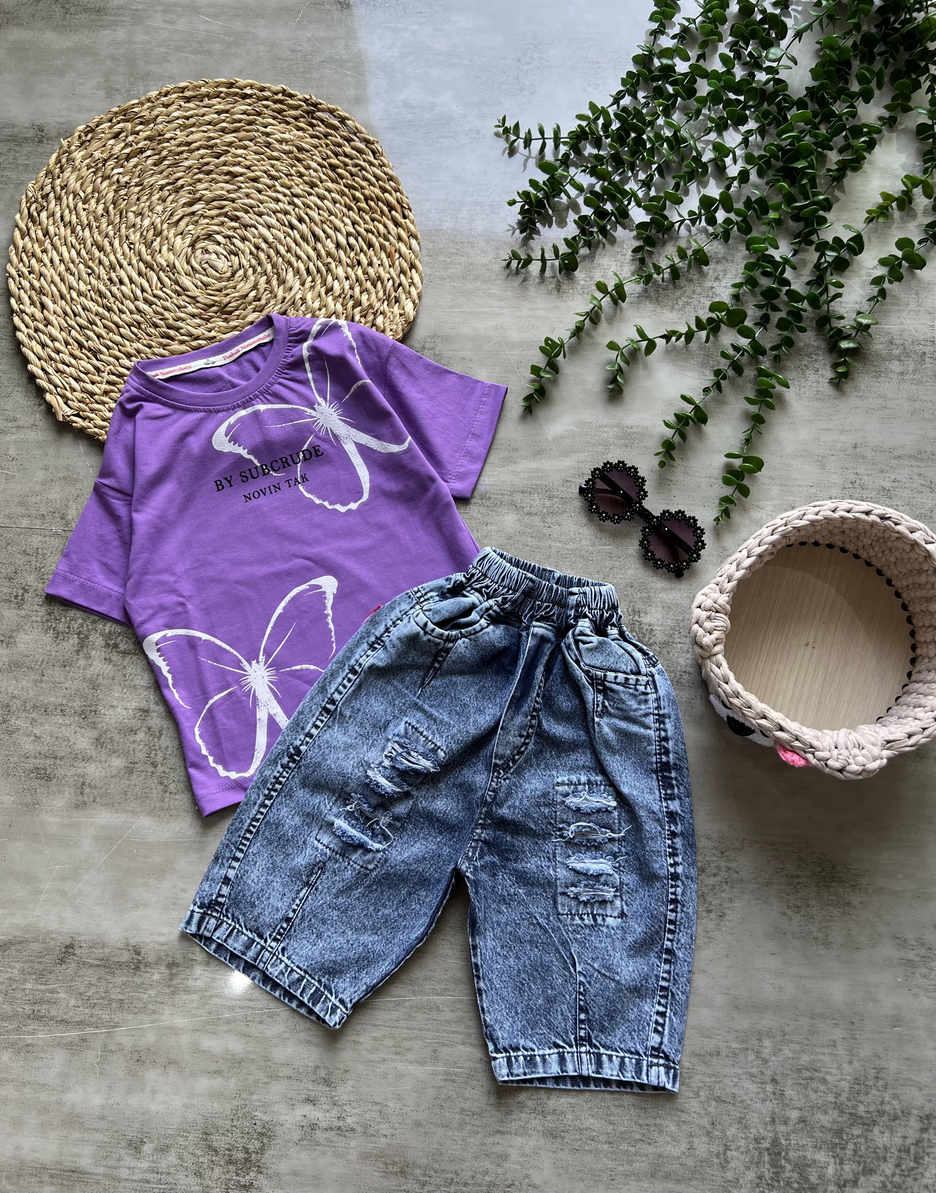 تیشرت شلوارک دخترونه جنس شلوارک جین زاپدارفقط سایز۴۰